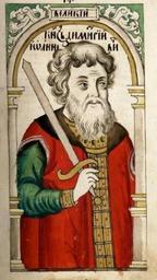 | Keywords: Dmitriy Donskoy from Titulyarnik (17th c., GIM).jpeg Титуля ник XVIIв иниатю а Бумага темпе а Госуда ственный исто ический музей http //chron eduhmao ru/img_10_12_0_0 html 17 век аноним Titulyarnik 17th c GIM Files uploaded by Shakko from various sources PD-Art Dmitry Donskoy in manuscripts |