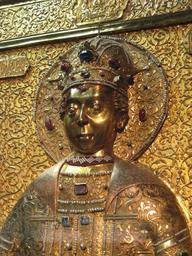 | Keywords: Dmitry Uglitsky kryshka raki 2.jpg КРЫШКА РАКИ ЦАРЕВИЧА ДИ ИТРИЯ асте а Павел Алексеев Дмит ий Алексеев Василий Ко овников Тимофей Иванов Василий алосолец под уководством Гав илы Овдокимова 1628 1630 годы асте ские осковского К емля Золото се еб о д агоценные камни жемчуг стекло де ево ткань; чеканка литье езьба канфа ение золочение эмаль 158 3 х 70 3 П оисходит из А хангельского собо а осковского К емля Рестав и ована в 1985 году И Долговым К инв Р-9989 own 2011 shakko PD-Art Exhibition Sainte Russie Moscow 2011 - applied arts Uploaded by Shakko/Photos Dmitry of Uglich's raka |