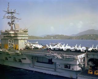 | Keywords: st. johns stjohns virgin islands (vi) virginislandsvi united states of america (usa) unitedstatesofamericausa outdoor vehicle water waterfront ship 330-CFD-DN-SC-87-05613: A starboard amidship's view of E-2C Hawkeye and F-14A Tomcat aircraft and an SH-3 Sea King helicopter on the flight deck of the nuclear-powered aircraft carrier USS Dwight D. Eisenhower (CVN 69), July 1,1981. (OPA-NARA II-8/6/2015). 330-CFD-DN-SC-87-05613: A starboard amidship's view of E-2C Hawkeye and F-14A Tomcat aircraft and an SH-3 Sea King helicopter on the flight deck of the nuclear-powered aircraft carrier USS Dwight D. Eisenhower (CVN 69), July 1,1981. (OPA-NARA II-8/6/2015). |