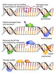 | Keywords: Dna repair base excersion en.svg Basenexzisionsreparatur ist eine der einfachsten Arten von DNA-Reparatur Das Bild zeigt einen vereinfachten Mechanismus Base excision repair is one of the simplest forms of dna repair the image here shows it in its shortest version La réparation par excision de bases est l'une des formes les plus simple de réparation de l'ADN Le schéma présenté ici la montre de façon simplifiée Naprawa przez wycinanie zasady BER - ang base excision repair - prosty schemat pokazujący naprawę DNA w wersji skróconej uproszczonej Own work based basically in http //www web-books com/MoBio/Free/Ch7G htm http //www sinauer com/cooper4e/sample/Figures/Chapter 2006/highres/CELL4e-Fig-06-21-0 jpg http //www benbest com/lifeext/BERpaths jpg between others 2008-09-22 LadyofHats LadyofHats Other versions/Dna repair base excersion DNA repair |