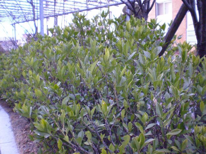 Keywords: DNUE Gardenia jasminoides winter.jpg Winter foliage of Gardenia jasminoides on the DNUE campus in Daegu South Korea Own 2007-01-28 Taken by User Visviva and released into the public domain Daegu National University of Education