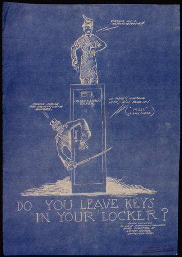 Keywords: Do you leave keys in your locker^ - NARA - 535392.jpg Scope and content General notes 535392 Local identifier 179-WP-1542 Office for Emergency Management War Production Board 01/1942 - 11/03/1945 Still Picture Records Section Special Media Archives Services Division NWCS-S National Archives at College Park 8601 Adelphi Road College Park MD 20740-6001 other date circa 1942 1943 Record group Record Group 179 Records of the War Production Board 1918 - 1947 Record group ARC 508 War Production Board compiled 1942 - 1943 Series ARC 533858 File unit File unit ARC Variant control numbers NAIL Control Number NWDNS-179-WP-1542 Other versions <gallery> File Do_you_leave_keys_in_your_locker _-_NARA_-_535392 tif tif File Do_you_leave_keys_in_your_locker _-_NARA_-_535392 jpg jpg </gallery> NARA-cooperation PD-USGov World War II posters from the United States |