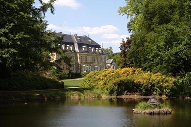 Keywords: doberschau-gaußig germany house home mansion estate architecture sky clouds pond lake water trees nature outside plants grass reflections summer