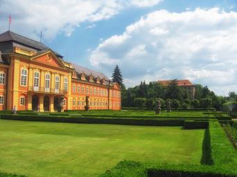 Keywords: dobris czech republic palace mansion estate grounds architecture landmark hedge nature outside historic historical