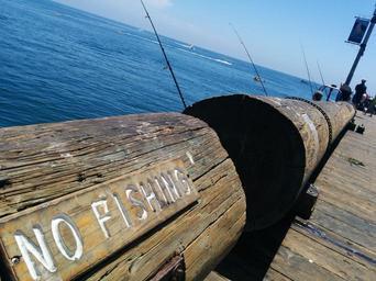 Keywords: dock fishing pier no fishing fish fishing poles prohibition rules breaking rules water harbor ocean poles
