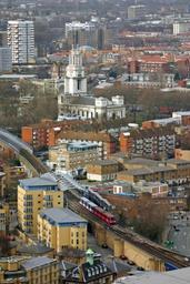 Keywords: Docklands Light Railway train city building cityscape Westferry station