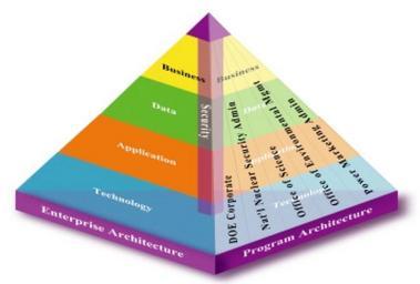 | Keywords: DOE EA Framework 2002.jpg en The graphic of the DOE EA Framework portrays the key components of the DOE Enterprise Architecture as follows A business layer describing current business lines and functions and delineating a future business environment based on Departmental business objectives and long-term strategies A data layer summarizing existing information resources and establishing a target data environment An application layer characterizing existing computer applications and defining a set of future applications to better meet DOE information processing and management requirements A technology layer depicting existing computer hardware software and communications resources and outlining a future technology environment A cross-cutting security layer summarizing current business data application and technology security considerations and mitigation measures and establishing the components of a strengthened and technically up-to-date security infrastructure The EA establishes an analytical framework by defining linkages among the business data application and technology components of the architecture The baseline as is and target to be architecture layers and the analytical framework establish the basis for developing a transition plan that defines the business process data management applications development and infrastructure projects necessary to transition DOE to the target environment The figure above also indicates another important aspect of the Department's EA - its relationship with Program architectures DOE Program areas are developing their architectures to meet important programmatic business objectives The DOE EA will not replace these architectures but will serve to frame them from a Departmental perspective source US Department of Energy 2003 Systems Engineering Methodology Version 3 September 2002 p 61-62 2002-09 Systems Engineering Methodology Version 3 September 2002 US Department of Energy DOE Office of the Chief Information Officer PD-USGov Uploaded with UploadWizard DOE Enterprise Architecture NIST Enterprise Architecture Model |