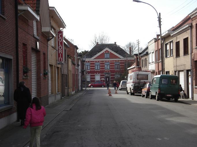 Keywords: Doel Pastorijstraat.JPG fr Doel prov de Flandre-Orientale Belgique Pastorijstraat rue du Presbytère perpendiculaire à la rive de l'Escaut Au fond le presbytère façade rouge nl Doel België Pastorijstraat met pastorij roodkleurige gevel Own Torsade de Pointes 2009-03-15 Domaine public Doel |