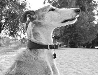 Keywords: dog animal greyhound spanish greyhound pet profile portrait fur necklace animal world mammal snout dog look