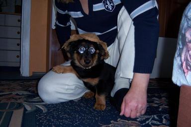 Keywords: dog animal race puppies cute pet mammal saucool glasses hat panel carnival pet trim