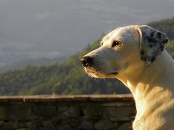 Keywords: dog animals profile pets muzzle look white nature laying landscape