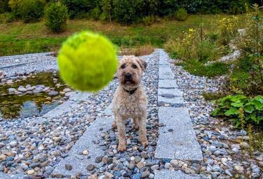Keywords: dog ball play wet dog wet animal terrier fun awakened joy walk tennis ball go walkies pet
