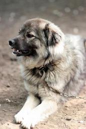Keywords: dog black watchman chain while coming yard
