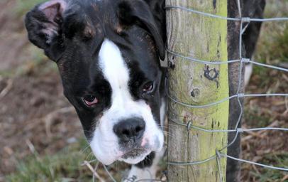 Keywords: dog boxer pet animal dog look curious black and white