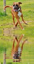 Keywords: dog boxer water mirroring