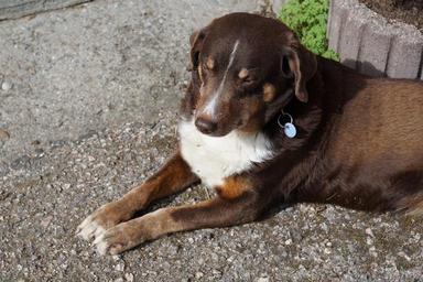 Keywords: dog brown animal pet no bread kira white follow recover hybrid race
