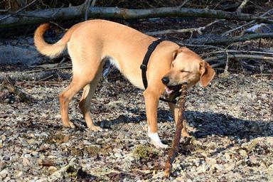 Keywords: dog brown young dog quadruped play great floor hybrid pet