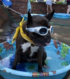 Keywords: dog clothes goggles bandana parade dress up cute street pet domestic fun costume canine pool swimming wading summer