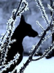 Keywords: dog doberman snow shadow winter