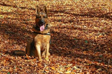 Keywords: dog german shepherd autumn foliage spacer forest
