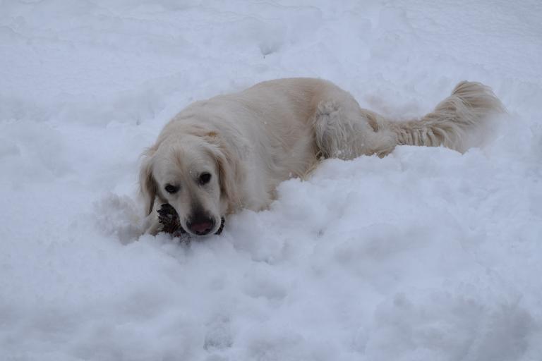 Keywords: dog golden retriver snow winter cute animals