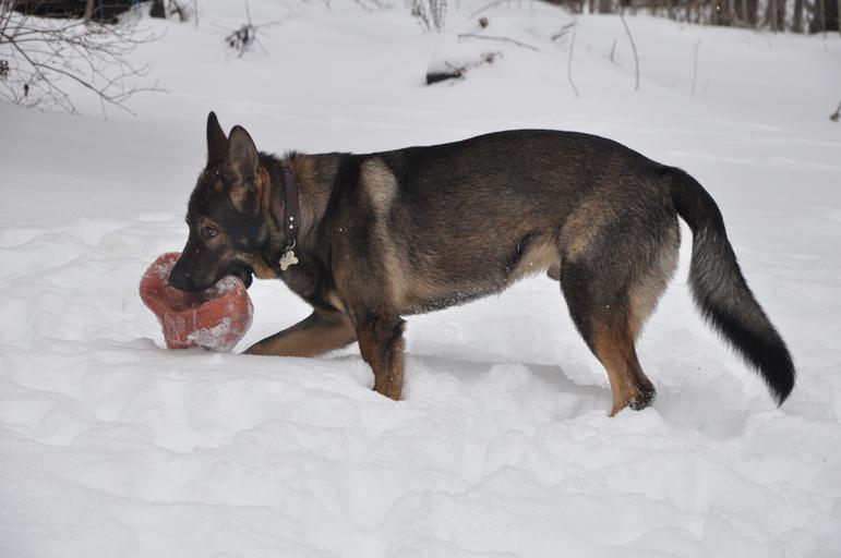 Keywords: dog gsd breed animal alsatian pet training puppy purebred young happy snow winter portrait