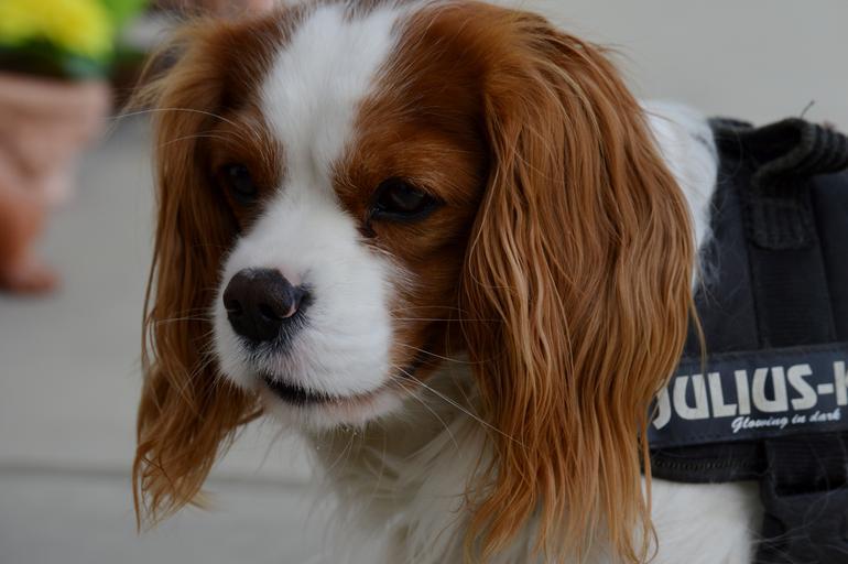Keywords: dog hybrid funny pet animal fur brown white cute dog cavalier king charles spaniel funny pet animal fur brown white cute
