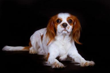 Keywords: dog king charles spaniel cavalier black lying bi color landscape format