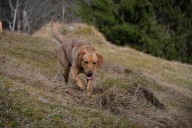 Keywords: dog labrador in motion meadow dog on meadow pet bright coat