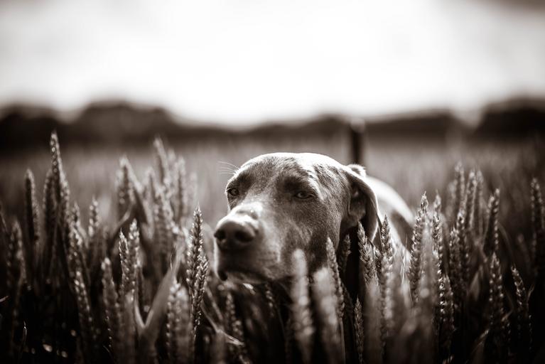 Keywords: dog labrador meadow weimaraner field sepia nature outdoors