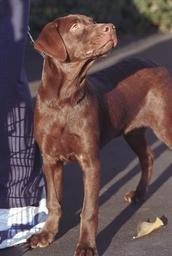 Keywords: dog labrador retriever chocolate buddy pet president clinton canine portrait looking young lab