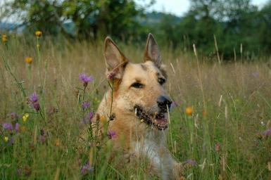 Keywords: dog meadow animal flower meadow