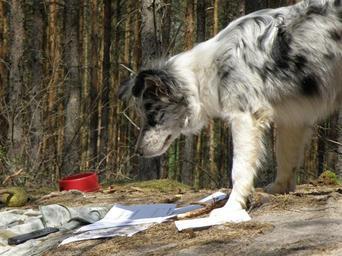 Keywords: dog merle blue merle collie puppy bowl