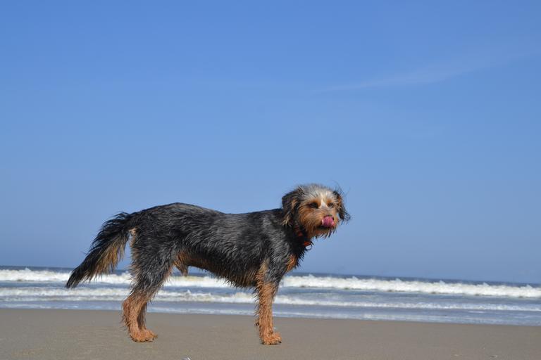 Keywords: dog on beach wiener yorkshire terrier hybrid animal