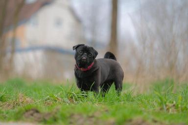 Keywords: dog out meadow animal pet hundeportrait nature purebred dog pug cute young grass in the free attention black