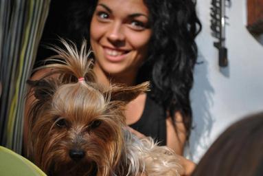 Keywords: dog pet animal canine domestic puppy adorable friend fun girl young smiling happy friends