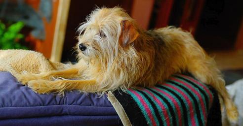 Keywords: dog pet hybrid female brown small dog animal wait dog snout fur relaxed cute