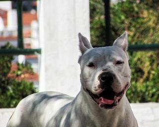 Keywords: dog pit bull animal canine portrait face expression staring