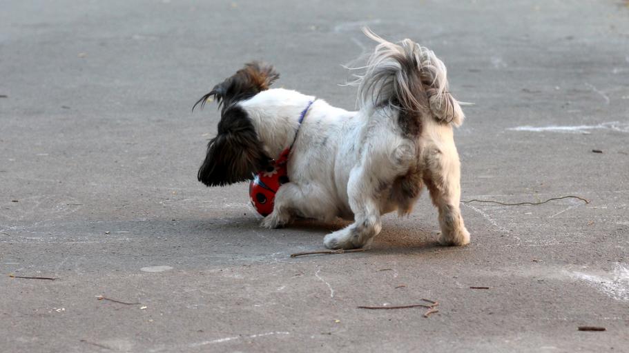 Keywords: dog play ball pet white black cute