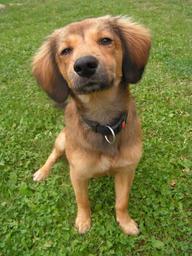 Keywords: dog portrait a hybrid brown snout head