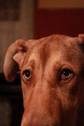 Keywords: dog pup puppy canine pet eyes stare look brown brown dog look forward young animal looking eye