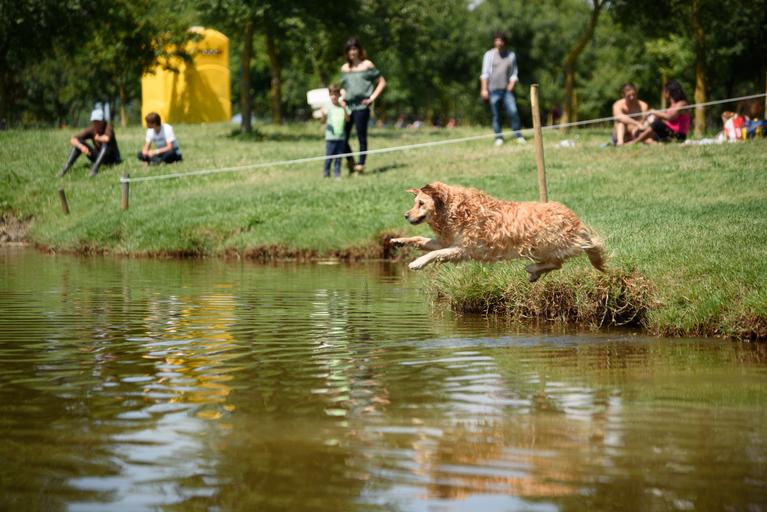 Keywords: dog salta water lake campaign labrador nature animals fun jump