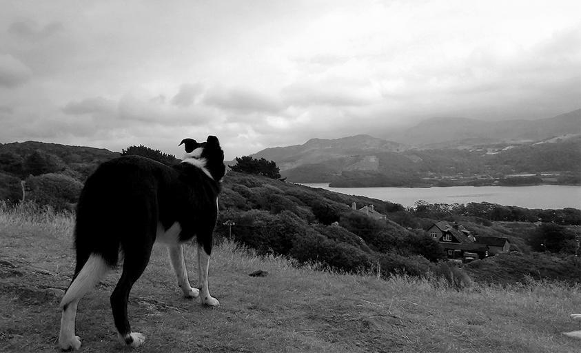 Keywords: dog sea sky nature clouds black and white hillside field tranquil rural scenic plain scenery mountain view outdoor mountains houses village countryside scene valley farmland destination