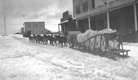 | Keywords: Dog sled team and driver, with cargo, Seward, ca 1914 (THWAITES 240).jpeg check categories 27 October 2016 4 Photograph Creator John E Thwaites Caption on image Ready for The Long Mush Seward Alaska PH Coll 247 387<br/>Prior to the formation of sled dog racing as a formal sport sled dogs were bred and used by native peoples of the polar regions of the world in their everyday lives for survival in harsh climates Two dogs commonly employed in sledding are Alaskan Malamutes and Siberian Huskies These two breeds had quite different origins and uses Alaskan Malamutes originated with a group of Eskimo people known as the Mahlemiut The dogs of that time were very large freighting dogs capable of pulling heavy weight The Mahlemiut people inhabited the region in the upper part of the Anvik River in Alaska and were spread out over a large area The Mahlemiut people used these dogs for hauling food back to the villages The gold rush in 1896 created a high demand for these dogs On the other hand Siberian Huskies originated with the Chuckchi people of northeastern Siberia These people had a Stone Age culture and used their dogs for a variety of things like herding reindeer and pulling loads These dogs were smaller and faster than their Mahlemiut counterparts These dogs were exported to Alaska at around the time of the gold rush Thus the gold rush played a very important role in the development of our modern day sled dog breeds Sled dog racing began as a formal sport with the first All-Alaska Sweepstakes race in 1908 Prior to this Alaska's mushers had little opportunity for recreation and they used their teams primarily for work and transportation Naturally most northern breeds were used as sled dogs Alaskan Malamutes Siberian Huskies Eskimo Dogs Greenlands Samoyeds Norrbottenspets and Hokkaidokens are all sled dogs However lots of different breeds of dogs have been and are used to drive sleds and carts John Thwaites made one mail delivery trip by dogsled from Seward about 1914 Subjects LCTGM Dogsledding--Alaska--Seward; Dog teams--Alaska--Seward; Snow--Alaska--Seward; Seward Alaska Subjects LCSH Sled dogs--Alaska--Seward; Mushers--Alaska--Seward; Freight and freightage--Alaska--Seward depicted place Seward Alaska ca 1914 Institution University of Washington UWASH-THWAITES-source accession number thwaites 240 PD-old-auto-1923 1940 Information field Order Number THW203 Images from the John E Thwaites Photographs of Alaska Collection to check Snow in Alaska Seward Alaska Sled dogs Mushers |