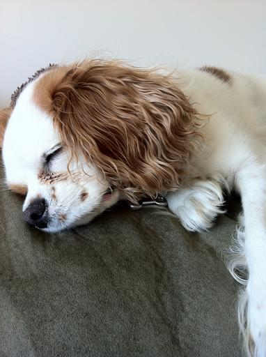 Keywords: dog sleeping cavalier king charles spaniel pet dog canine domestic mammal young adorable doggy fur