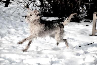 Keywords: dog small dog awakened curious terrier snow run