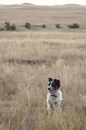 Keywords: dog spotted border collie pasture friend grassland collie canine ears attention pet white cute animal black attractive sweet spots happy smiling doggy mammal puppy domestic road trail question meadow