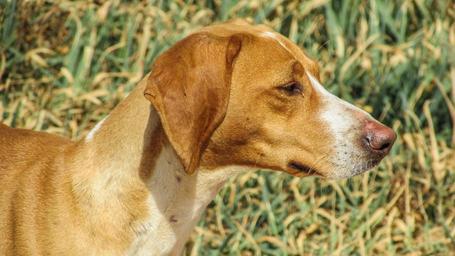 Keywords: dog vizla brown stray portrait looking fields outdoor