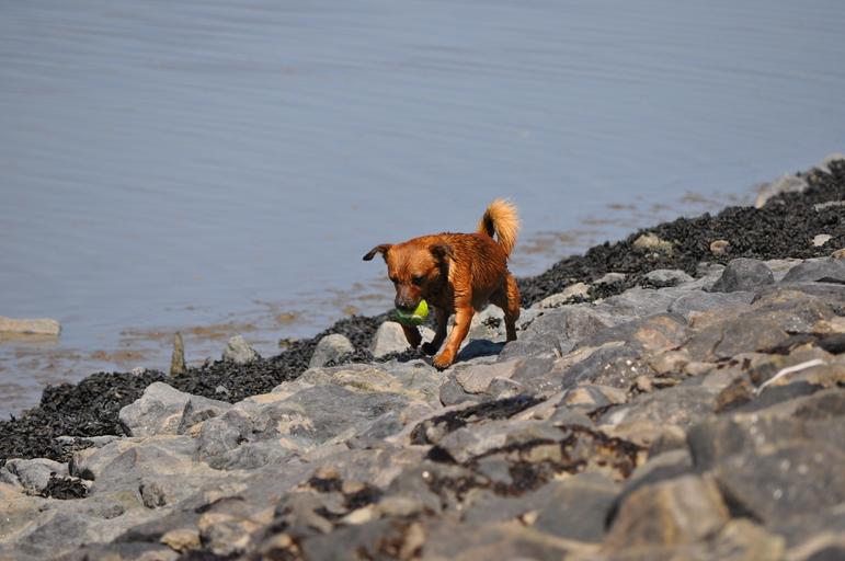 Keywords: dog water sea dog training north sea tennis ball bank movement animal