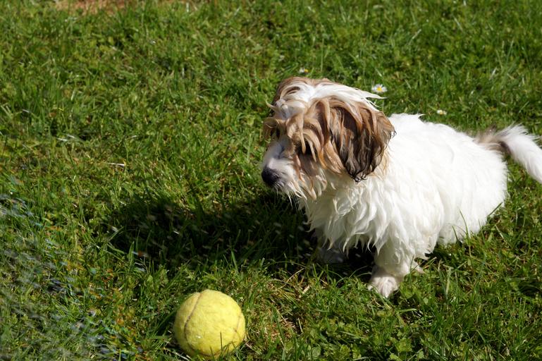 Keywords: dog water summer ball tennis ball splashing creature coton de tulear animal wet